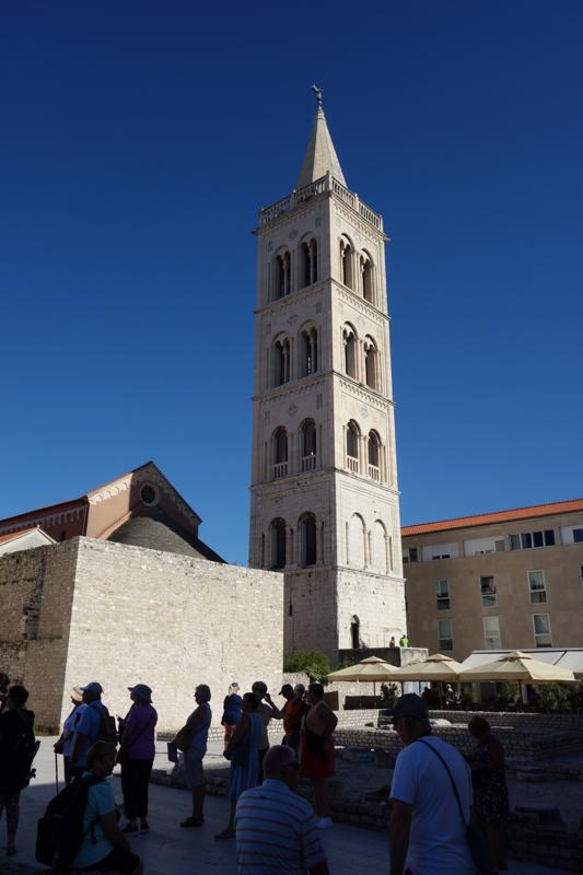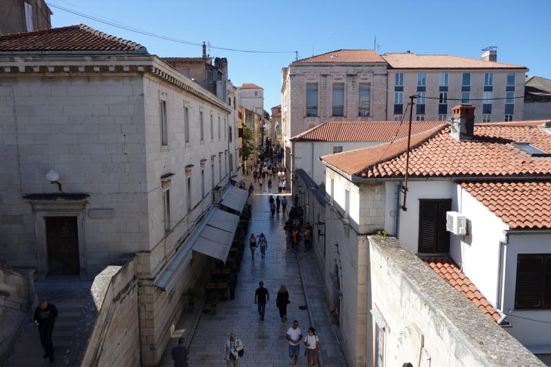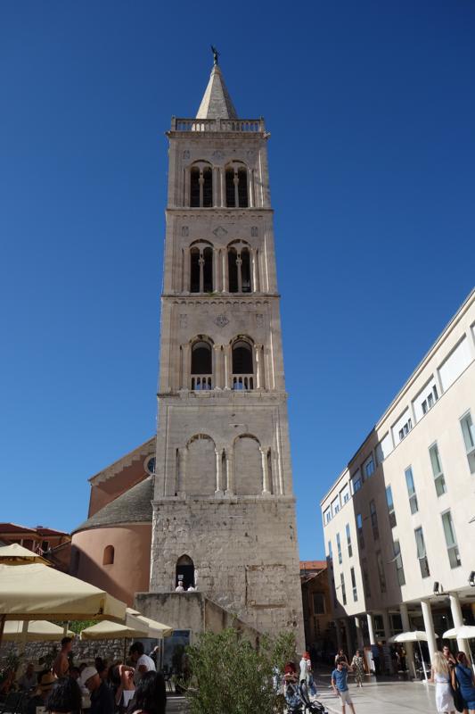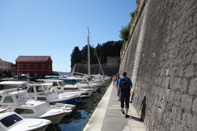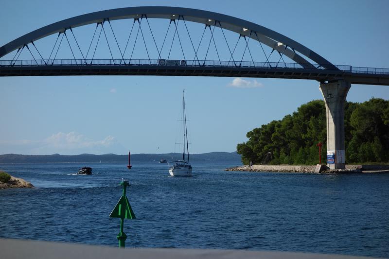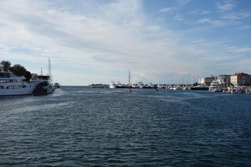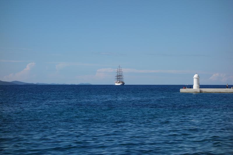 Nach dem Aufstehen um 08:15 Uhr gab es Frühstück, bevor wie üblich um 10:00 die Leinen losgeworfen wurden. Unter Motor fuhren wir unter der Brücke zwischen den Inseln Ugljan und Pasman hindurch (es sah knapp aus, passte aber problemlos von der Höhe). Nach der Engstelle setzten wir die Segel und fuhren nach Norden zur sehr empfehlenswerten Bootstankstelle in Brodanov, südlich von Zadar. Das Anlegen längsseits klappte problemlos, ich war überrascht, dass nur knapp 18 Liter Diesel in den Tank passten, obwohl wir den Motor jeden Tag mindestens 2 Stunden laufen lassten mussten, um die Bordbatterie für Elektronik und vor allem den Kühlschrank aufzuladen. Das Ablegen unter Eindampfen in die Vorspring klappte auch. Da es nun Mittag war, überquerten wir wieder den Kanal nach Ugljan, um dort in einer Badebucht vor anker zu gehen, bevor wir am Nachmittag die letzte Etappe unseres Törns zurück zur Marina Zadar antreteten. Um 17:00 Uhr machten wir dann ohne Probleme in der Marina fest, kurz darauf konnten wir über der Stadt eine Flugshow mit 6 Maschinen beobacten, die teilweise mit Nebelfahne tolle Manöver absolvierten. Nun wurde das Unterschiff per Taucher auf Schäden kontrolliert, anschließend entsorgten wir den Müll und begaben uns zur Fuß in die Altstadt. Hier genossen wir im Restaurant am Brunnenplatz geschmortes Rindfleisch nach dalmatinischer Art mit Gnocci, nach einem Eis ließen wir den Abend in der Garden Lounge bei Shots und Bier ausklingen. Um 00:00 Uhr kehrten wir zum Schiff zurück.