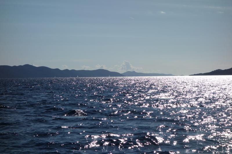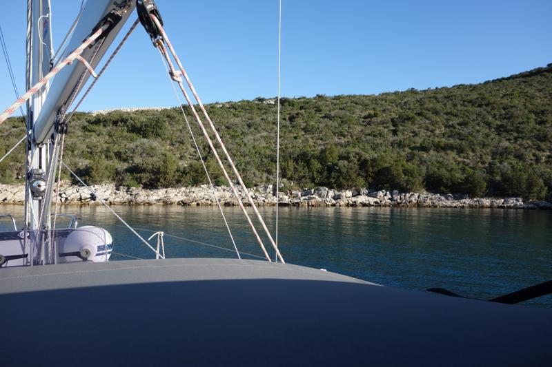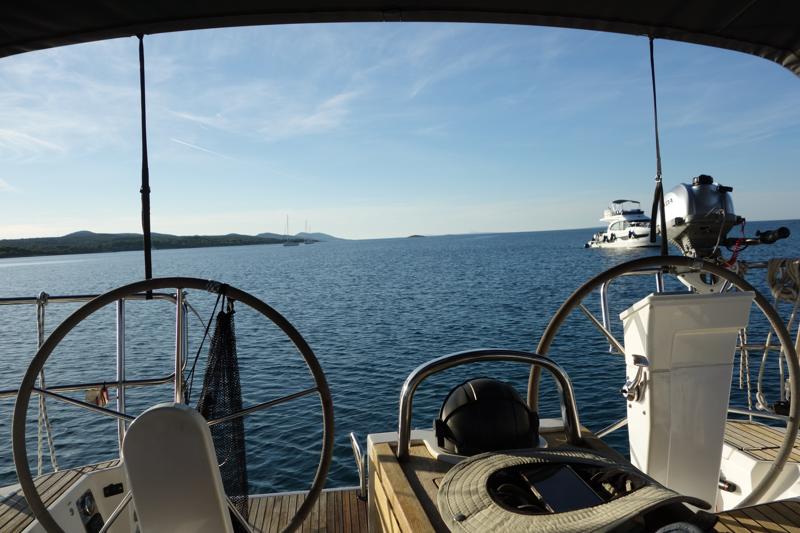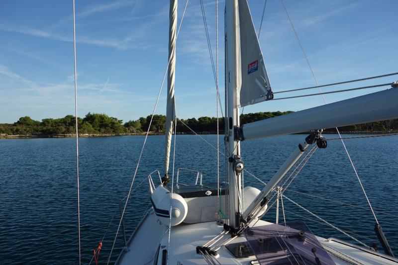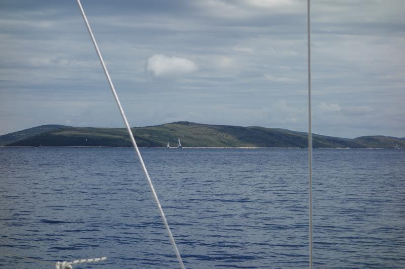 Um 08:00 Uhr standen wir auf. Es regnet leicht und für den Tagesverlauf sind weitere Gewitter angekündigt, so dass wir beschließen, einen weiteren Tag in der geschützten Bucht zu verbringen. Gegen Mittag ändert sich dann aber die Vorhersage, von Gewittern und Starkwind ist keine Rede mehr und auch der Himmel klart auf, so dass wir beschließen, den Anker zu lichten. Bei nun herrlichem Segelwetter segeln wir bis 17:30 in die Bucht von Sestrunj, dort gehen wir vor Anker. Beim Ankermanöver brauchten wir diesmal zwei Versuche, beim ersten Durchgang hat der Anker nicht gehalten, etwas weiter weg in einer kleineren Bucht packt der Anker, wir liegen allerdings recht dicht unter Land. Viel Spielraum bleibt da nicht, wenn der Anker mal slippt...