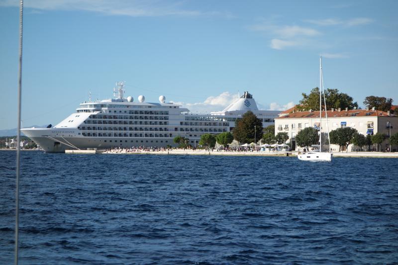 Um 03:00 Uhr morgens klingelt der Wecker. Das ist sehr früh, aber um 03:30 Uhr steht bereits das vorbestellte Taxi vor der Tür, um mich zum Siegburger Bahnhof zu bringen. In der Bahn um kurz nach 04:00 Uhr treffe ich Dirk, meinen Freund und Co-Skipper. Gemeinsam geht es zum Flughafen Köln und von dort pünktlich nach Zadar in Kroatien. Am Flughafen übernehmen wir einen Leihwagen, den wir für den Tag vorbestellt haben, verstauen unser Gepäck im Kofferraum und fahren zunächst in die Stadt auf einen öffentlichen Parkplatz in der Nähe vom Kaufland. Den Wagen lassen wir hier stehen und machen uns zur Fuß auf den Weg in die Altstadt. Nach einem gemütlichen Rundgang und einem Kaffee schauen wir mal am frühen Nachmittag am Yachthafen vorbei. Eigentlich wollten wir nur nachfragen, ob unser gebuchtes Boot auch einen Backofen an Bord hat, dann können wir nämlich Aufbackbrötchen einkaufen. Zufällig können wir auch schon früher die Übergabe der Yacht erledigen, damit haben wir locker 2 Stunden eingespart. Nach den Formalitäten und der Einweisung ins Schiff gehen wir zunächst zum Auto zurück und erledigen den Großeinkauf (2 randvolle Einkaufswagen für knapp 500,00 Euro) im Kaufland. Mit dem vollbepackten Auto geht es dann schließölich zur Marina, die Einkäufe und das Gepäck werden entladen und während Dirk den Wagen zum Flughafen zurück bringt, verstaue ich die Lbensmittel an Bord. Dirk kommt mit dem Linienbus zurück zur Marina und wird es endlich Zit für das erste wohlverdiente Bier.