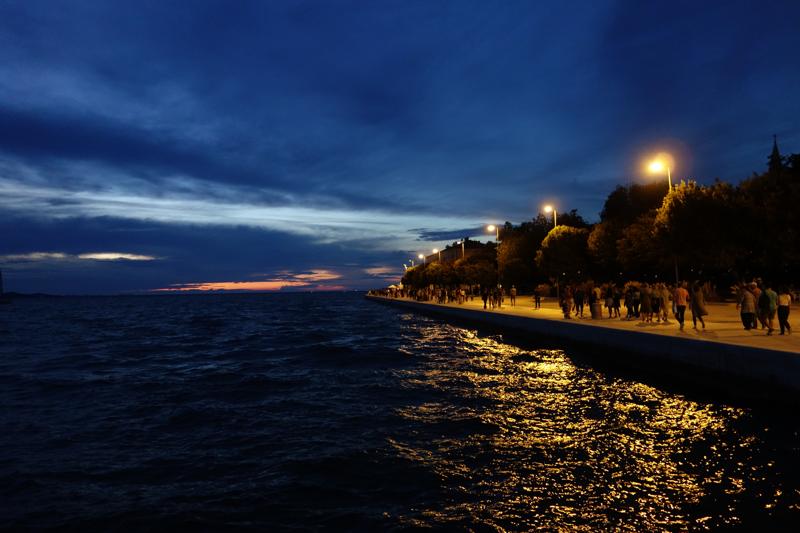 Heute mussten wir um 07:00 Uhr aufstehen, nach dem Frühstück packten wir unsere Sachen, fegten das Schiff und übergaben es um 08:30 Uhr an den Vercharterer. Unser Gepäck konnten wir in der Charterbasis lassen, so dass wir unbeschwert per Ruderfähre in die Altstadt gelangen konnten. Nach einem Besuch von Wasserorgel und Stadttor genossen wir Bier und Espresso in der Ledana Lounge, bevor wir über den Fosa-Hafen zur Uferpromenade gingen. Nach einem weiteren Bier kehrten wir zu unserem Gepäck in der Marina zurück, hier hieß es Abschied nehmen von André, der nun seinen Weg zum Flughafen antreten musste. Dirk und ich verfrachtetetn unser Gepäck zum fußläufig erreichbaren Appartment. Nach einer kurzen Dusche begaben wir uns wieder in die Altstadt. Hier gab es zum Abendessen gegrillte Sepia mit Mangold und Kartfoffeln, bevor wir die Wasserorgel und die Lichtinstallation bewunderten. Den Abend ließen wir dann wieder in der Garden Lounge auf der Festungsmauer ausklingen. Um 23:00 Uhr waren wir wieder im Appartment.